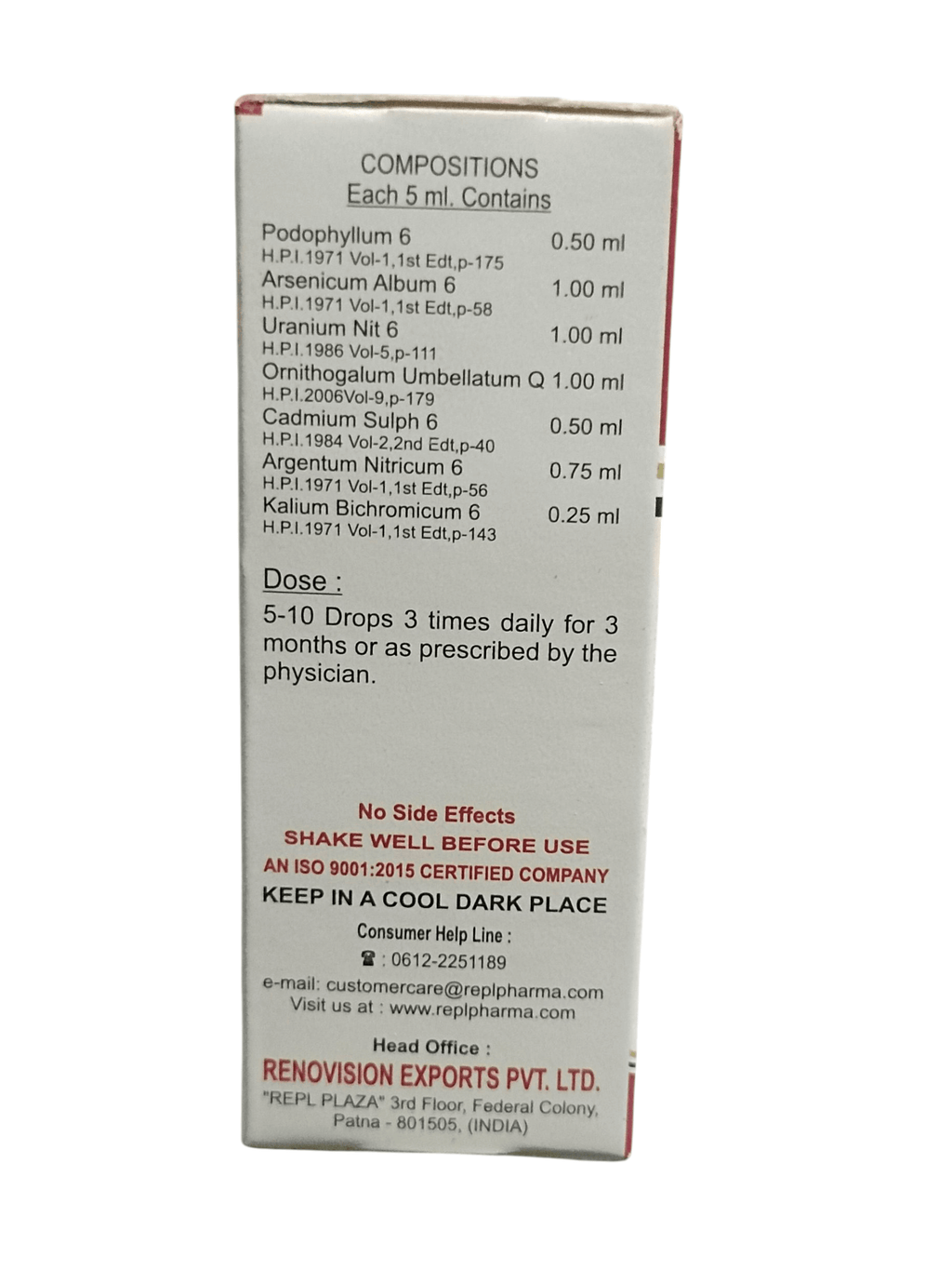 • Take 10 to 15 drops in half a cup of water, three times a day, or as directed by the physician.