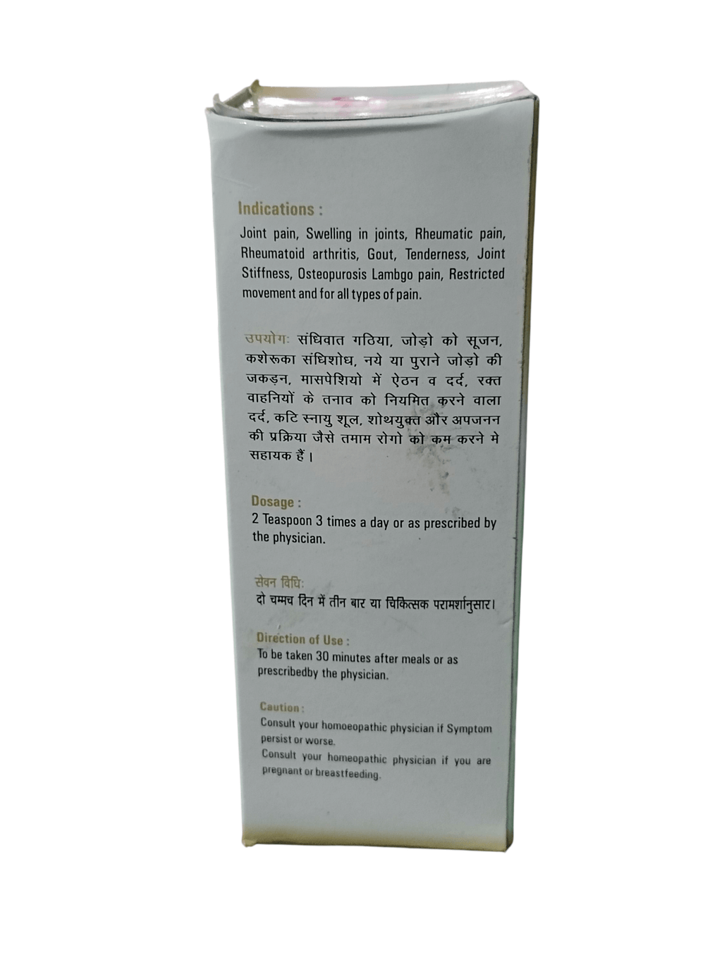 is a homeopathic remedy specially formulated to provide relief from joint pain, muscular stiffness, and rheumatic conditions. It acts on the underlying causes of arthritis, gout, backache, and muscular inflammation, helping to restore joint mobility and reduce swelling.